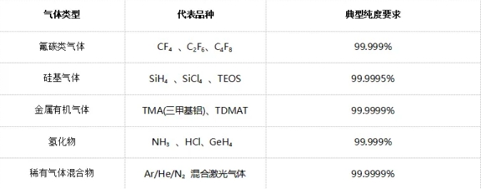 清洗气体:腔室清洁用(如三氟化氮NF₃、氟气F₂)