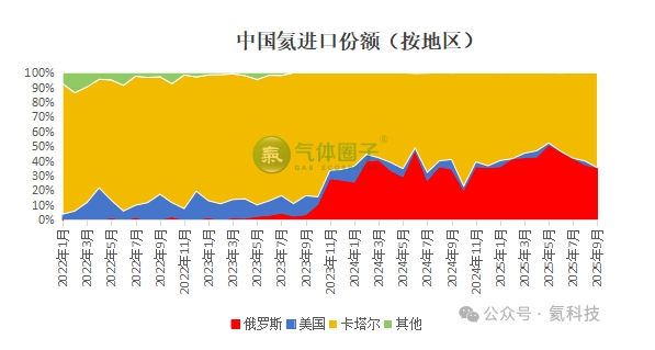2025年9月,中国氦气进口地(按来源地)主要分别为卡塔尔、俄罗斯、美国,分别占总进口量的65%、35%、0.01%;其中,自卡塔尔进口氦气237吨。